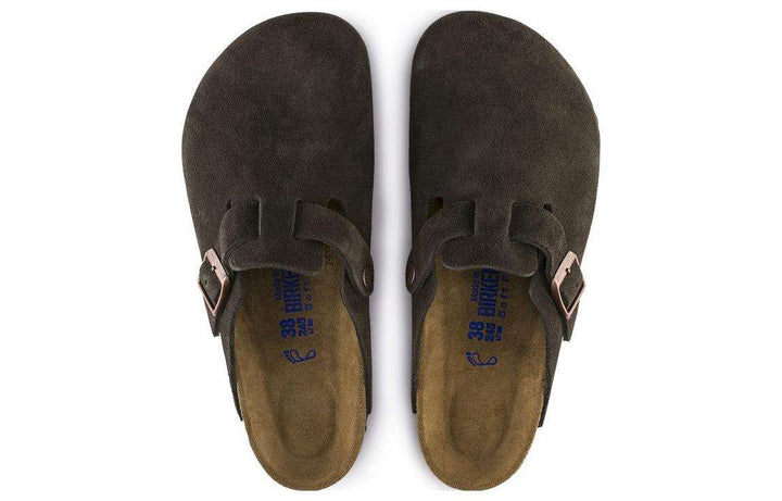 Birkenstock Boston Toe Slippers Dark Brown Regular (Wide) combine classic elegance with all-day comfort. The upper is made of soft dark brown suede and is accented with a metal buckle with a copper touch that adds practical distinction. Birkenstock Boston Toe Slippers Dark Brown Regular (Wide) provide integrated cork soles equipped with a velvet inner layer to shape the arch of the foot and heel support, making walking quiet and comfortable. Birkenstock Boston Toe Slippers Dark Brown Regular (Wide) affirm their commitment to quality. The closed-toe design suits both indoor and outdoor use efficiently, while Birkenstock Boston Toe Slippers Dark Brown Regular (Wide) offer a slip-resistant rubber sole and a groove pattern that provides good grip on various surfaces. Choose Birkenstock Boston Toe Slippers Dark Brown Regular (Wide) if you are looking for quality made to last for years, an elegant look, and daily medical comfort. Birkenstock Boston Toe Slippers Dark Brown Regular (Wide) combine luxurious materials, durable fabrics, and thoughtful details that make every step smoother. Their wide design is easy to clean and ideal for all seasons and uses. Always.