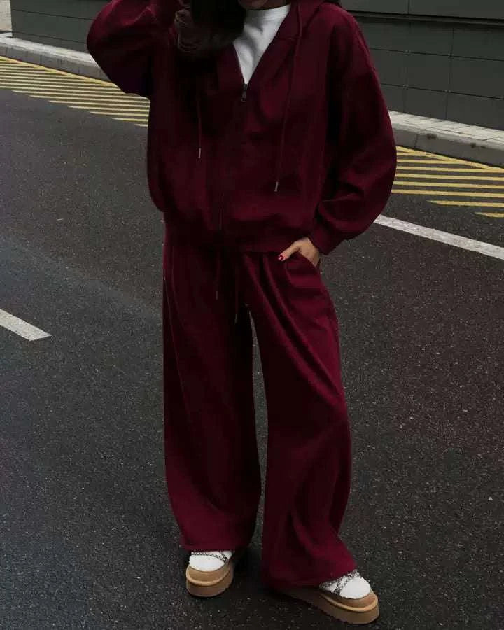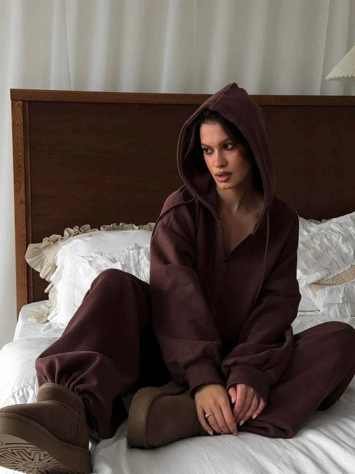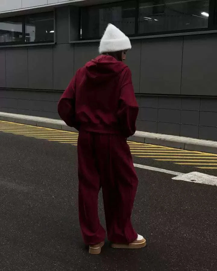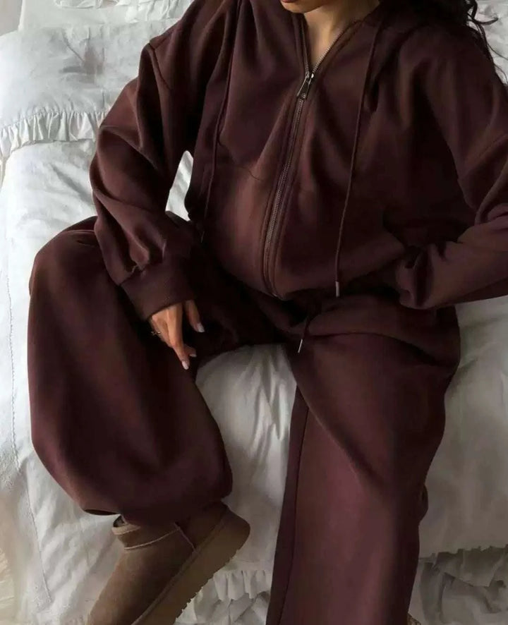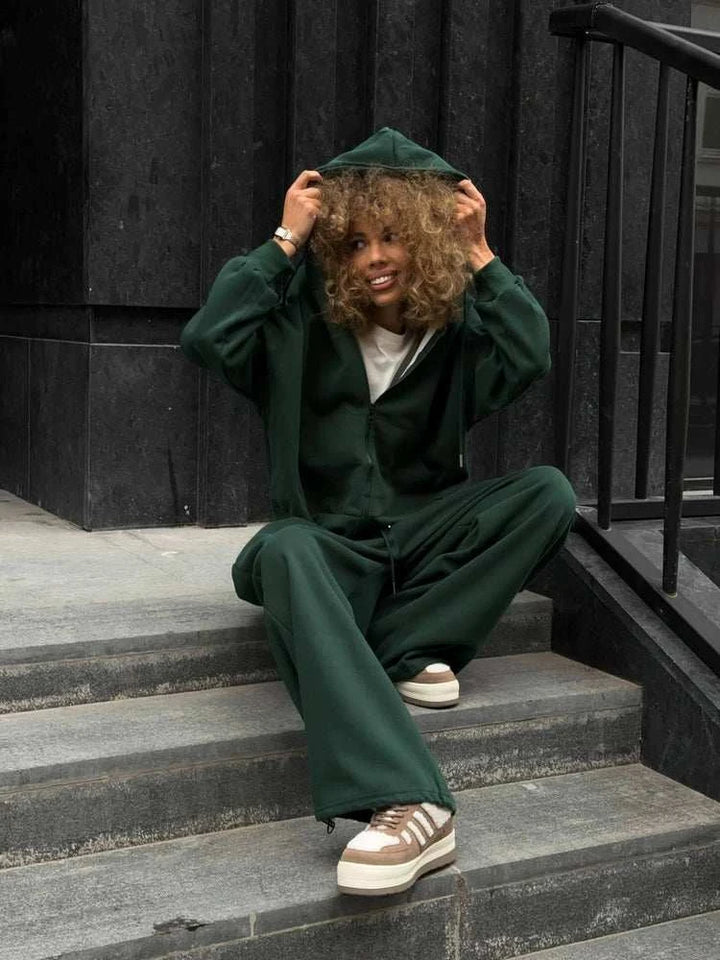 Discover comfort and style with the Cotton Casual Hooded Cardigan and Pants set, designed with soft, padded cotton fabric that provides light warmth and a comfortable texture. The Cotton Casual Hooded Cardigan and Pants set features a loose, modern cut, a zip-up hoodie with practical pockets, and wide-leg pants with an adjustable drawstring waist. The Cotton Casual Hooded Cardigan and Pants set is available in deep colors like burgundy, olive, and brown, making it easy to coordinate for daily and home wear. Choose the Cotton Casual Hooded Cardigan and Pants set for everyday wear with sneakers and thick coats. Quality is evident in the meticulous stitching and durability that withstands frequent use, while the design ensures a stylish look without compromising comfort. This set is an ideal choice for those seeking a practical and elegant piece that combines warmth and style. The Cotton Casual Hooded Cardigan and Pants set is carefully made to endure repeated washing and maintain a fresh look, offering flexibility in movement and a neat appearance every day with lasting warm elegance and a consistently stylish look.
