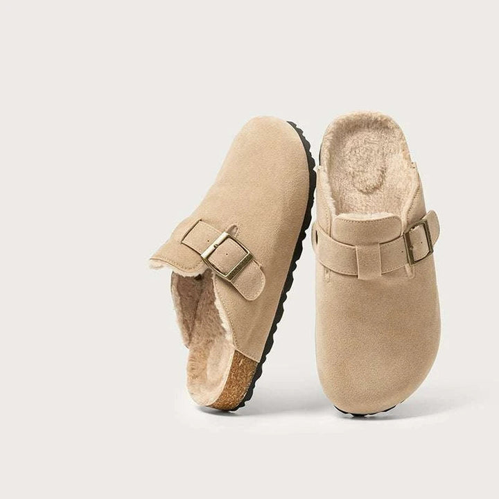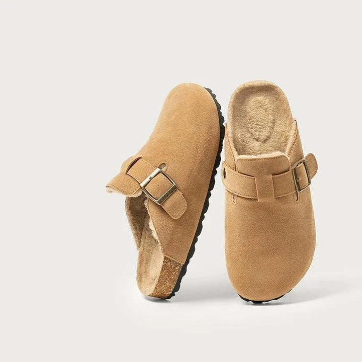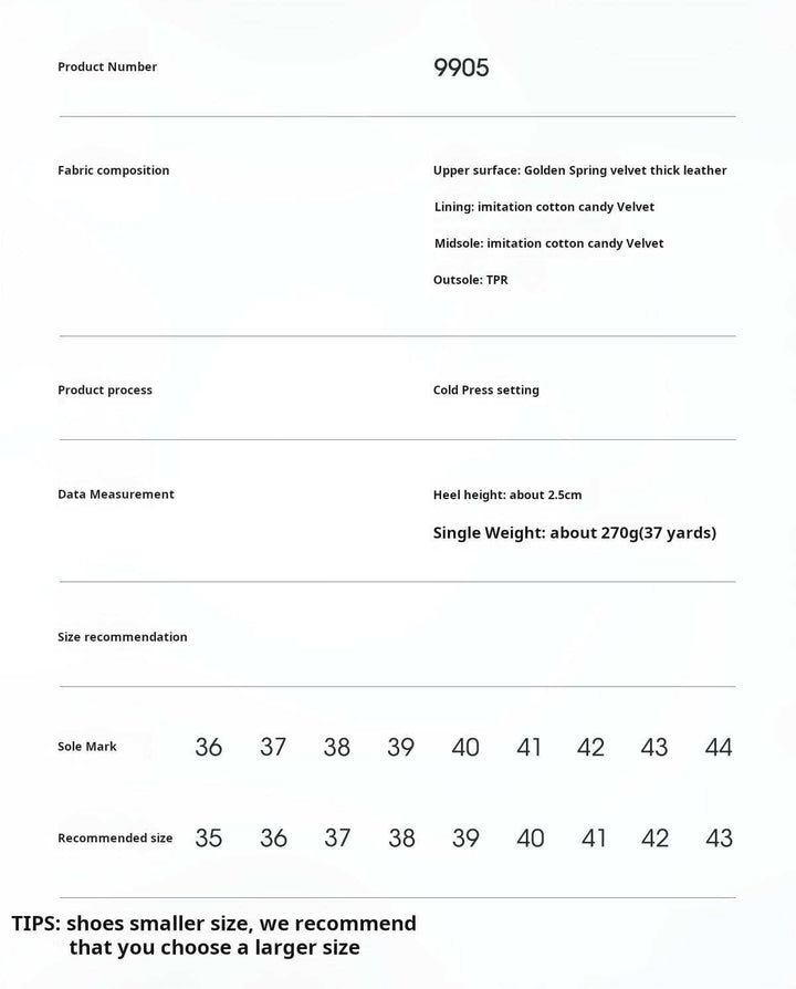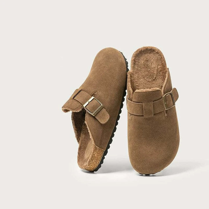 A luxurious home slipper that combines warmth and elegance: dalaxiong toe cotton slippers equipped with a thick artificial fur inner layer and velvet cotton that maintain foot warmth and provide a soft feeling. Closed-toe design with an adjustable strap and a copper buckle that gives an elegant look and customizable comfort. dalaxiong toe cotton slippers rely on a durable TPR outsole and a softwood midsole for shock absorption to support stable daily wear. The selected materials are of high quality, and their velvet texture adds a practical luxurious touch. dalaxiong toe cotton slippers weigh approximately 270 grams and provide stability and slip resistance with flexibility that allows the sole to bend without breaking. Suitable for home, quick outings, and remote work, available in brown, beige, walnut, and light beige colors to suit every taste. dalaxiong toe cotton slippers are an ideal choice for those seeking daily comfort and durability. dalaxiong toe cotton slippers are a perfect gift for winter. dalaxiong toe cotton slippers experience instant comfort with simple orthopedic support and a durable appearance that lasts for years with quality assurance and fast, easy delivery service.