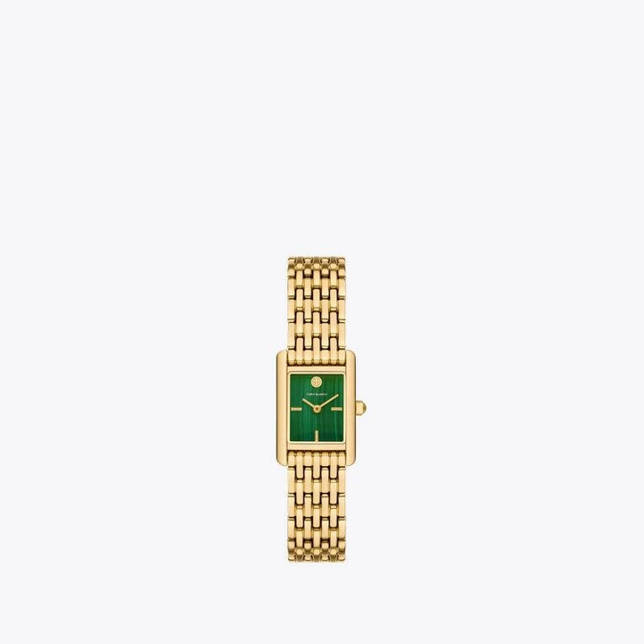 Shine with the TORY BURCH ELEANOR Mini Watch TBW1092, which combines the elegance of the ivory-inspired beige dial and its sleek small size. The TORY BURCH ELEANOR Mini Watch TBW1092 features a rectangular dial, a gold-plated stainless steel bezel, and a bracelet with a finely crafted chain charm that provides all-day comfort. The design of the TORY BURCH ELEANOR Mini Watch TBW1092 highlights the Tory Burch logo on the crown and clasp, adding a distinctive luxurious touch. The TORY BURCH ELEANOR Mini Watch TBW1092 is suitable for formal occasions and daily looks, serving as a practical and complementary jewelry piece. The TORY BURCH ELEANOR Mini Watch TBW1092 comes with an elegant orange gift box and precise manufacturing details with high quality to ensure durability and ease of wear. Choose it to pamper your wrist with lightness, softness, and timeless elegance that combines luxury and practicality—a style investment that attracts attention and makes every moment more elegant. The TORY BURCH ELEANOR Mini Watch TBW1092 stands out with precise craftsmanship and practical dimensions of 17x19 mm and a 12 mm strap width, offering you absolute comfort and a harmonious look that suits all outfits with unmatched elegance daily and forever.