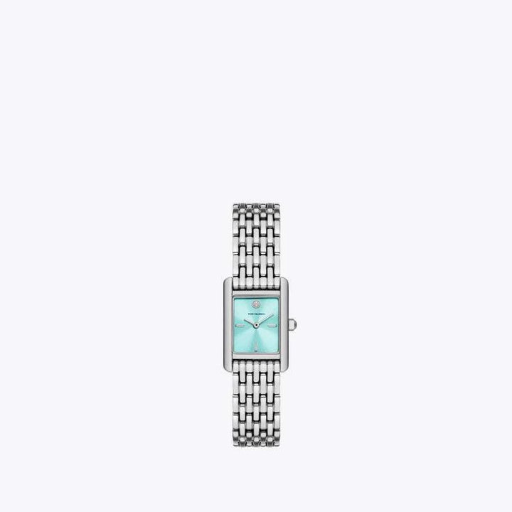 TORY BURCH ELEANOR Small Watch is a distinctive timepiece that combines classic design with a modern touch, made of polished stainless steel with a turquoise dial inspired by the sea and a sleek geometric outline reflecting luxury. It offers comfort and lightweight wear for daily use with a durable mesh strap and a double clasp featuring the brand's logo, TORY BURCH ELEANOR Small Watch, and a slim bezel that completes the elegant look. The perfect choice for occasions, work, and gifts with a stylish orange box that adds instant value. TORY BURCH ELEANOR Small Watch features fine details such as the crafted crown and rectangular case shape with high-quality manufacturing and attention to finishing. Invest in a piece that lasts and highlights your refined taste. TORY BURCH ELEANOR Small Watch enjoy a harmonious look on the wrist and flexibility in pairing with accessories. Owning it means choosing practical elegance and confidence in every moment. TORY BURCH ELEANOR Small Watch small details add a distinctive touch and unmatched daily elegance and truly stand out. A design that suits every look and draws attention with lasting elegance.