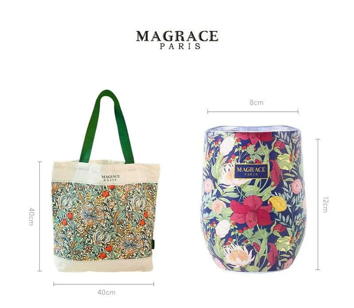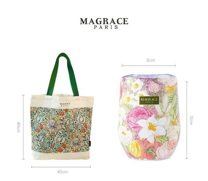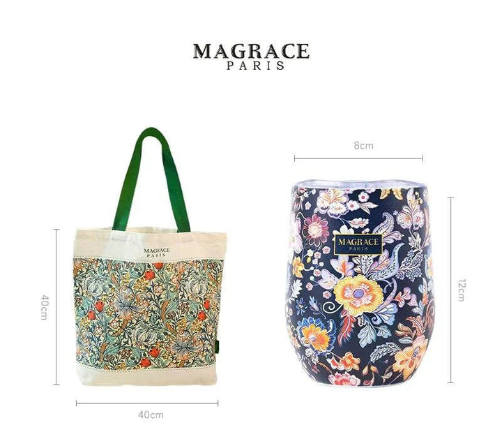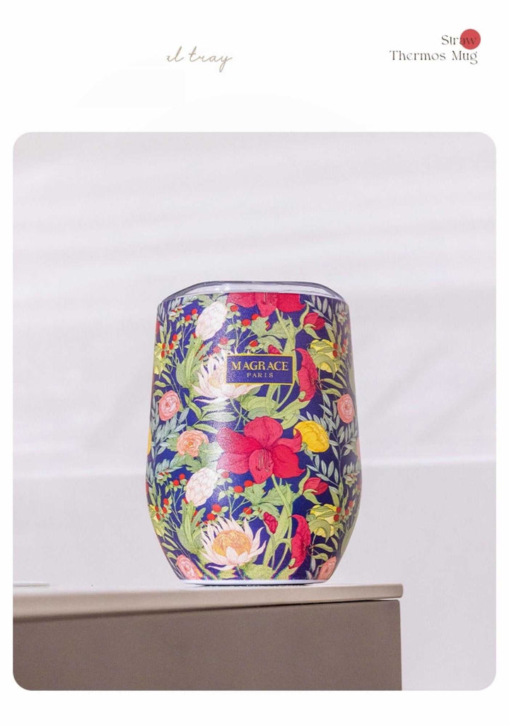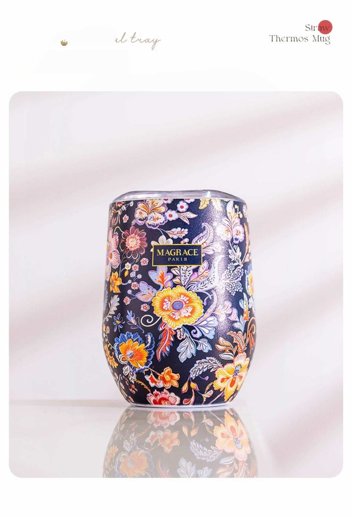 Experience the elegance and comfort of drinking with the French MAGRACE Coffee Cup, designed with luxurious floral patterns highlighted in pink, blue, and a shiny purple hue. The French MAGRACE Coffee Cup combines a comfortable U-shape that fits securely in the hand with a transparent leak-proof lid. The French MAGRACE Coffee Cup is lined with SUS304 stainless steel with a double insulating layer that maintains the temperature of hot or cold beverages, has a capacity of approximately 400 ml, and a practical size to fit in a car holder. The French MAGRACE Coffee Cup is suitable for home, office, and travel, safe for health with quality certifications, and features an elegant design perfect as a gift with a luxury box. The French MAGRACE Coffee Cup stands out with a small golden logo and delicate engravings that add aesthetic distinction, and its lightweight design gives you freedom of movement without heaviness. Choose excellence today with a cup that combines quality, comfort, and beauty; invest in an exceptional coffee experience that adds a refined French touch to your day. The French MAGRACE Coffee Cup is your smart choice for every morning, featuring a scratch-resistant and easy-to-clean design that provides lasting comfort and renewed elegance, and is an ideal gift for friends and family with a stunning appearance and superior durability.