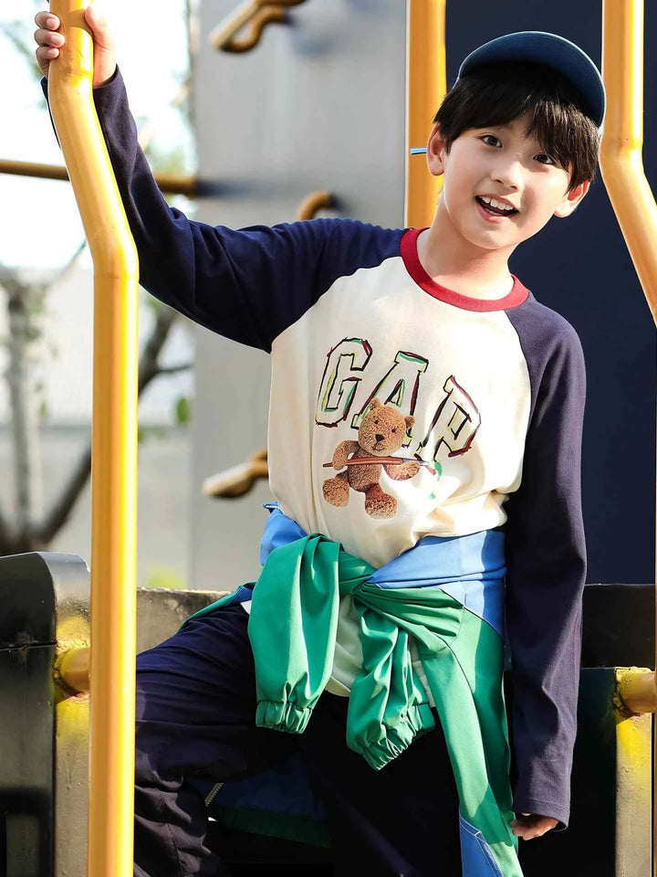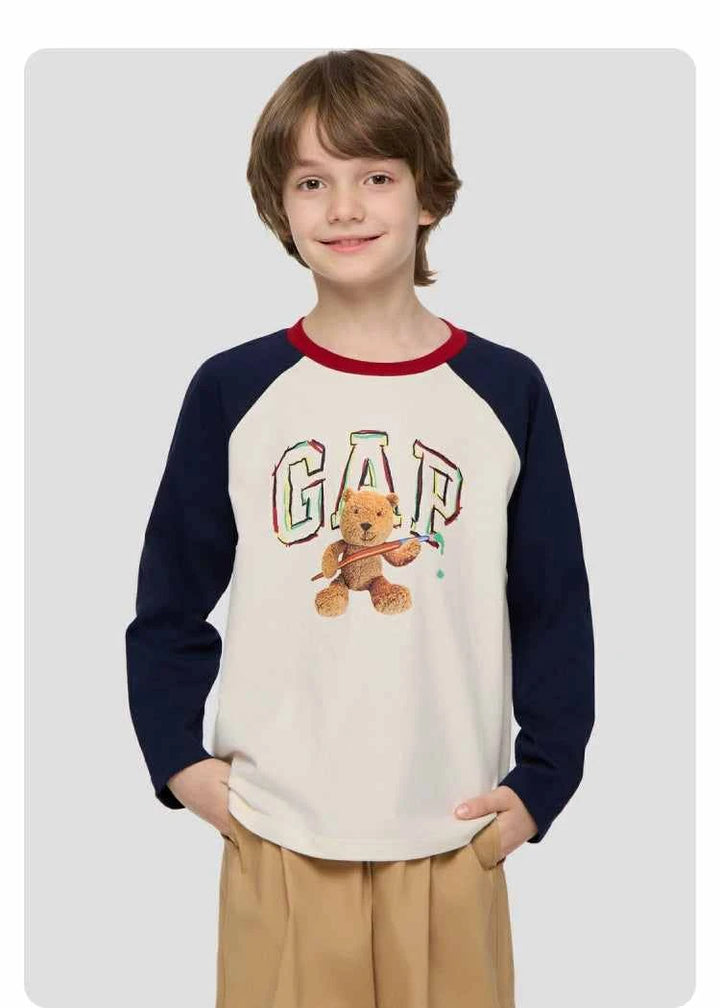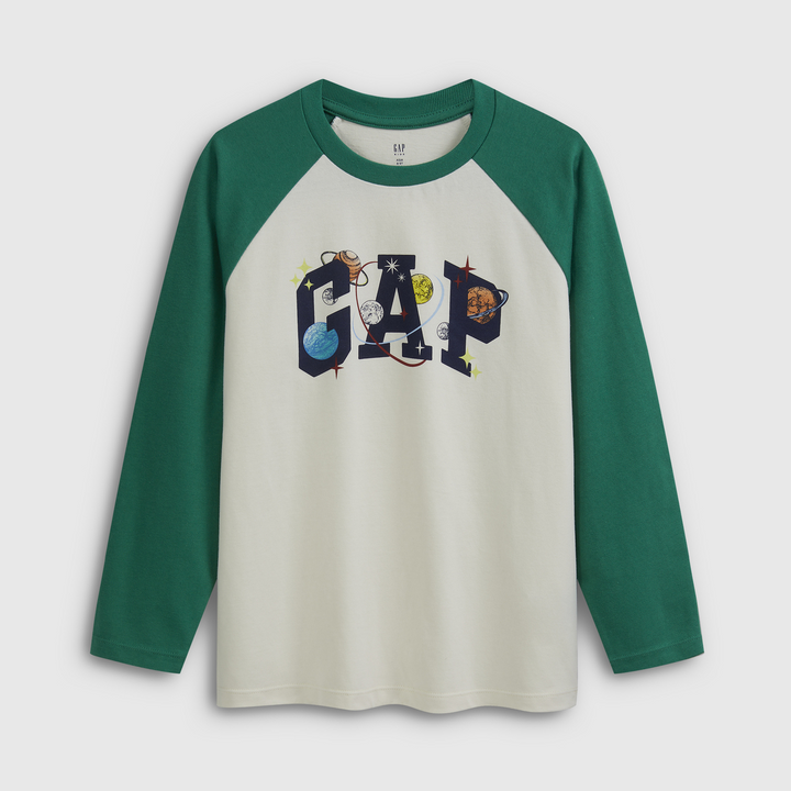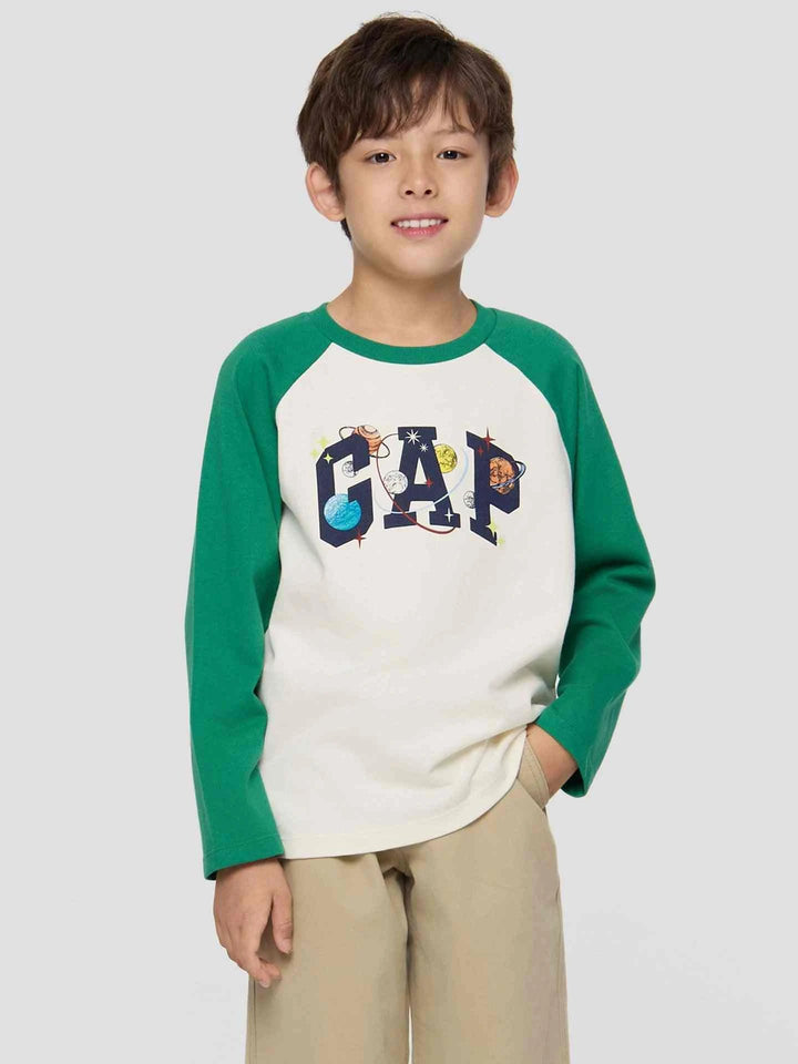 Gap جاب – تيشيرت أولادي مطبوع بأكمام طويلة
