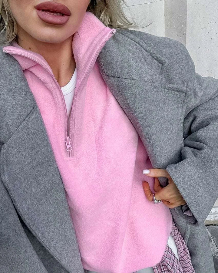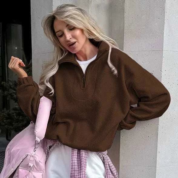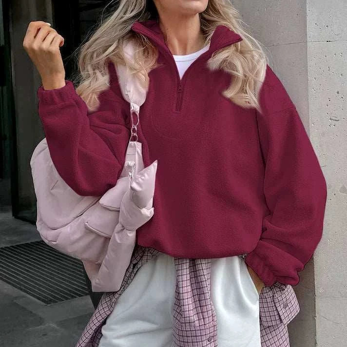 Lambswool Lapel Pullover Sweatshirt Fleece for Women