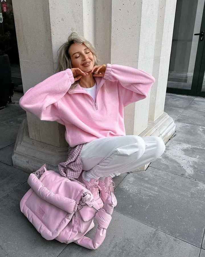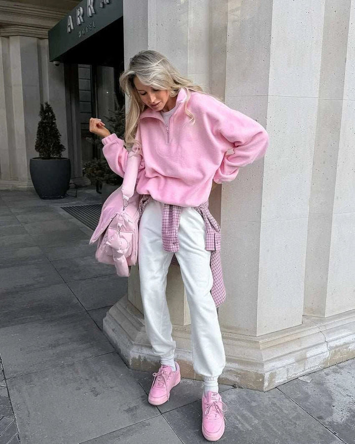 Choose comfort and elegance with the Lambswool Lapel Pullover sweatshirt designed with soft fleece fabric and a vibrant pink color that adds liveliness to the look. The Lambswool Lapel Pullover sweatshirt features a half-zip collar that adjusts ventilation and allows for versatile layering, flexible sleeves, and elastic hems for comfortable movement. The Lambswool Lapel Pullover sweatshirt is perfect for daily outings, travel, and morning strolls with jeans or white sweatpants and sneakers in the same color tone. The Lambswool Lapel Pullover sweatshirt provides effective warmth and lightness thanks to the polar fleece model, and its velvety texture offers a luxurious feel all day long. The Lambswool Lapel Pullover sweatshirt is available in multiple colors to suit every taste and reflects an effortlessly modern style. Invest in a piece that combines quality, comfort, and brilliance to become your ideal choice in cold seasons. The Lambswool Lapel Pullover sweatshirt has a practical design, is easy to wash, and features colorfastness and varied sizes to give you a long-term investment and daily elegance without complication. Choose it now to renew your wardrobe with a soft and distinctive touch suitable for all simple occasions.