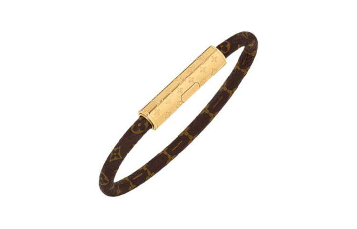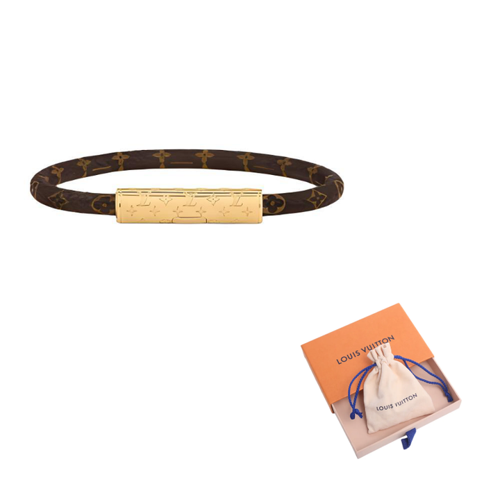 LOUIS VUITTON logo canvas bracelet women's brown gold