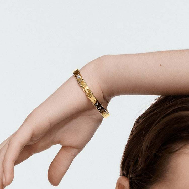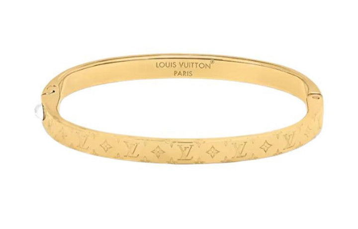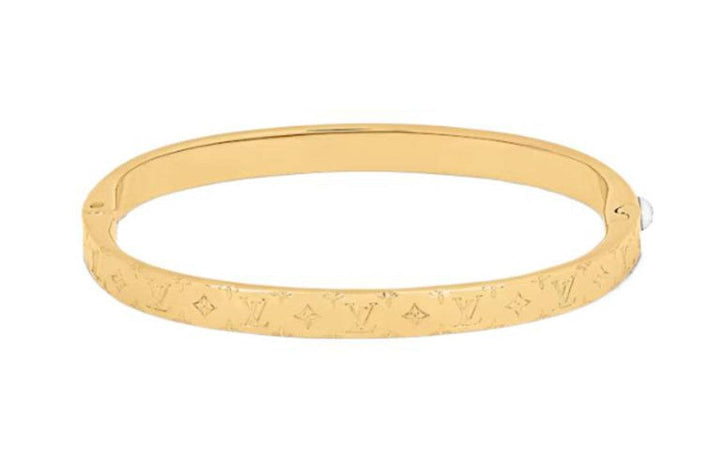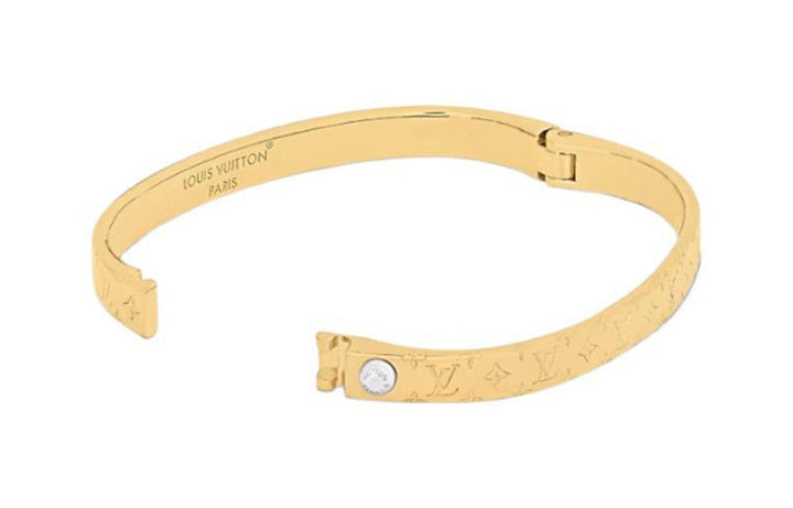 LOUIS VUITTON Logo engraved metal bracelet women's gold