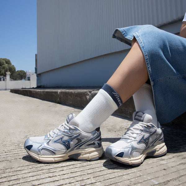 Mizuno Speed 2K fantasy silver shoes combine a classic design with a futuristic touch featuring silver shine and mesh layers for ventilation. Mizuno Speed 2K fantasy silver offers instant comfort thanks to a padded midsole and responsive heel cushion, with excellent ground grip provided by a gray rubber sole with a mesh pattern. Mizuno Speed 2K fantasy silver is easy to coordinate with everyday wear and street fashion while metallic and blue details maintain its elegance. Suitable for running, daily walking, and curb climbing, Mizuno Speed 2K fantasy silver provides clear stability and arch support. The materials combine breathable mesh and shiny synthetic leather coatings for durability and abrasion resistance, enhancing quality and value. If you want a distinctive look and all-day comfort, choose Mizuno Speed 2K fantasy silver because it combines performance and beauty in one shoe. The design of Mizuno Speed 2K fantasy silver is inspired by running heritage and offers lightweight and dynamic control with meticulous stitching and durability for busy days. The silver, blue, and creamy edge color choices give the shoe a stylish, modern, and practical character that suits every look with elegance.