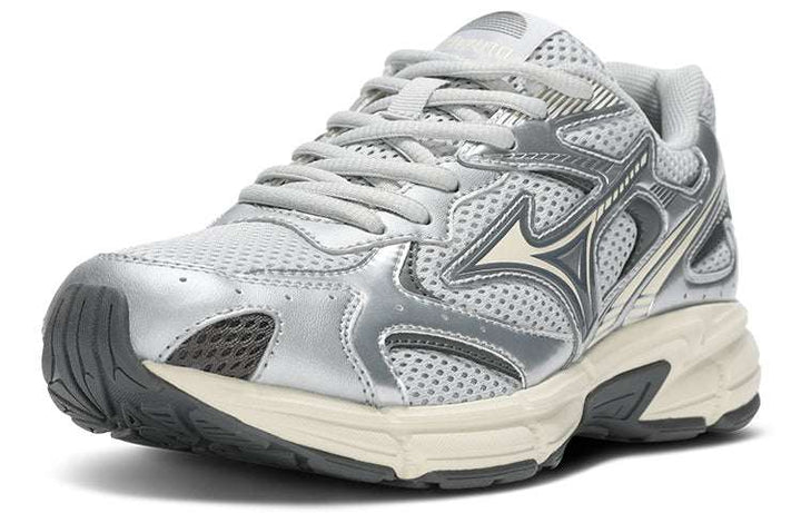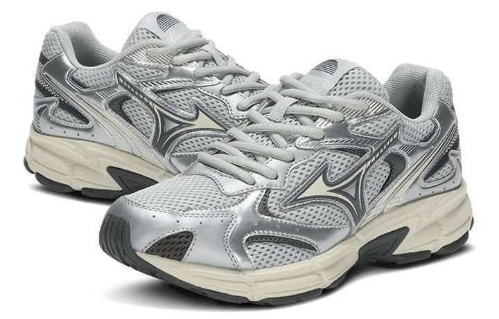 Mizuno Speed 2K silver gray is a shoe that combines a futuristic design with metallic elegance. Made from breathable mesh with shiny synthetic silver layers and gray supportive overlays, and a creamy padded midsole for added comfort. Mizuno Speed 2K silver gray provides excellent stability thanks to a dark rubber sole and slip-resistant patterns. Ideal for daily running, walking, and stylish everyday use thanks to its upscale sporty look. Mizuno Speed 2K silver gray offers excellent ventilation, ankle support, and shock-absorbing cushioning with every step. Its durable materials make the shoe a practical choice that lasts long while maintaining its shiny appearance. Mizuno Speed 2K silver gray adds a modern touch to any outfit and ensures foot comfort all day long. Mizuno Speed 2K silver gray is suitable for short trips and long days with a design that balances lightness and strength. With flexibility to match streetwear and sportswear, this model is a perfect blend of performance and beauty. Mizuno Speed 2K silver gray is a clear choice for those seeking quality, comfort, and distinction. Confidence for the long term.