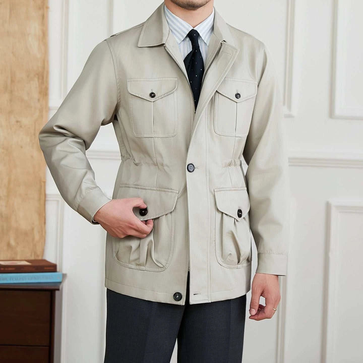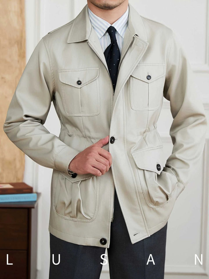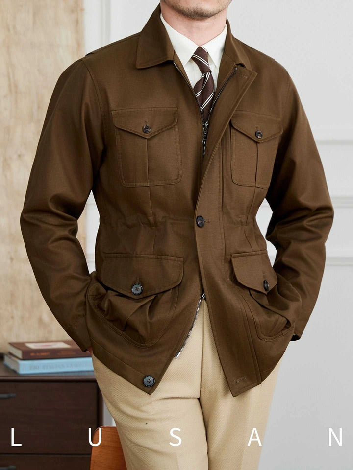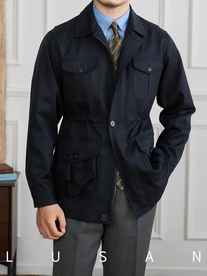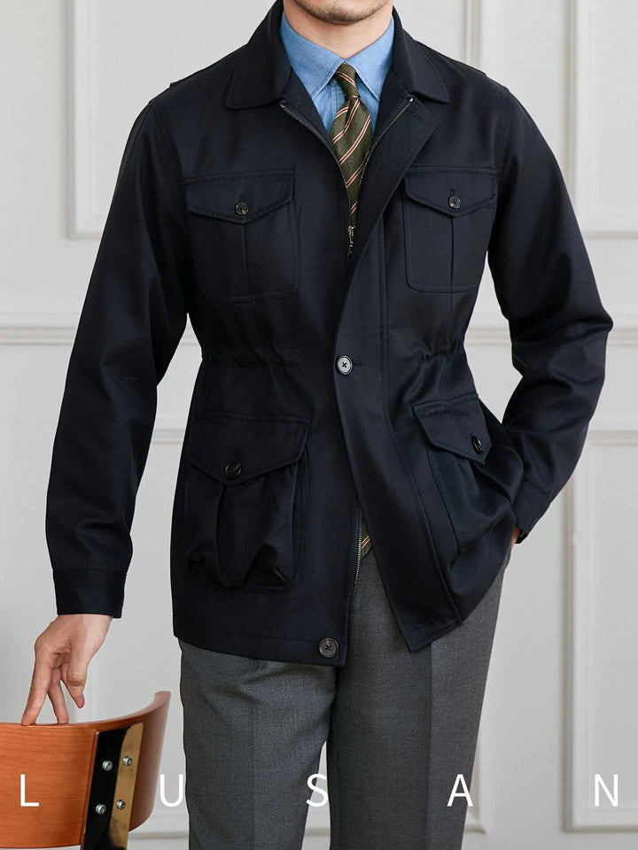 Mr. Lu San's new Lyocell cotton fashion waist elastic hunting jacket gentleman's autumn thin lapel jacket for men