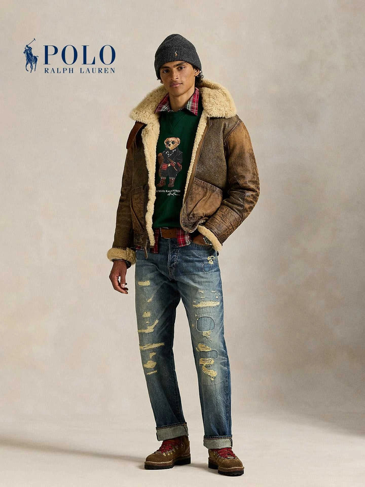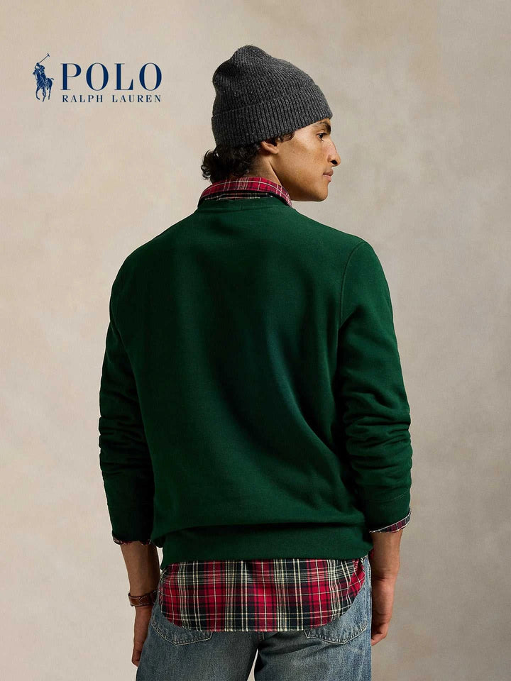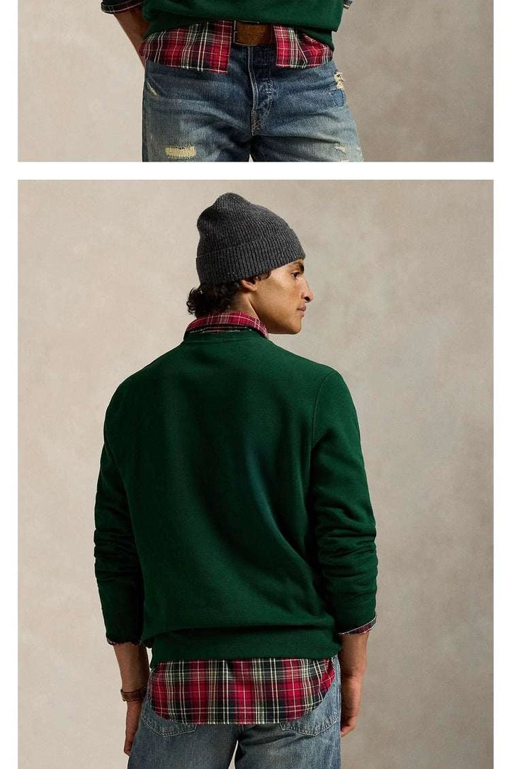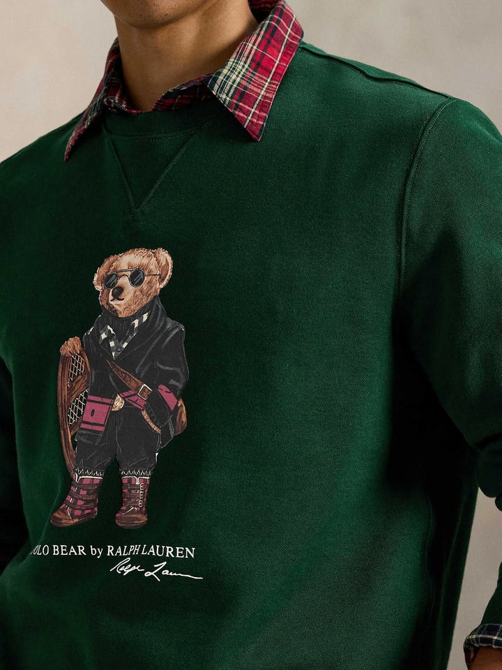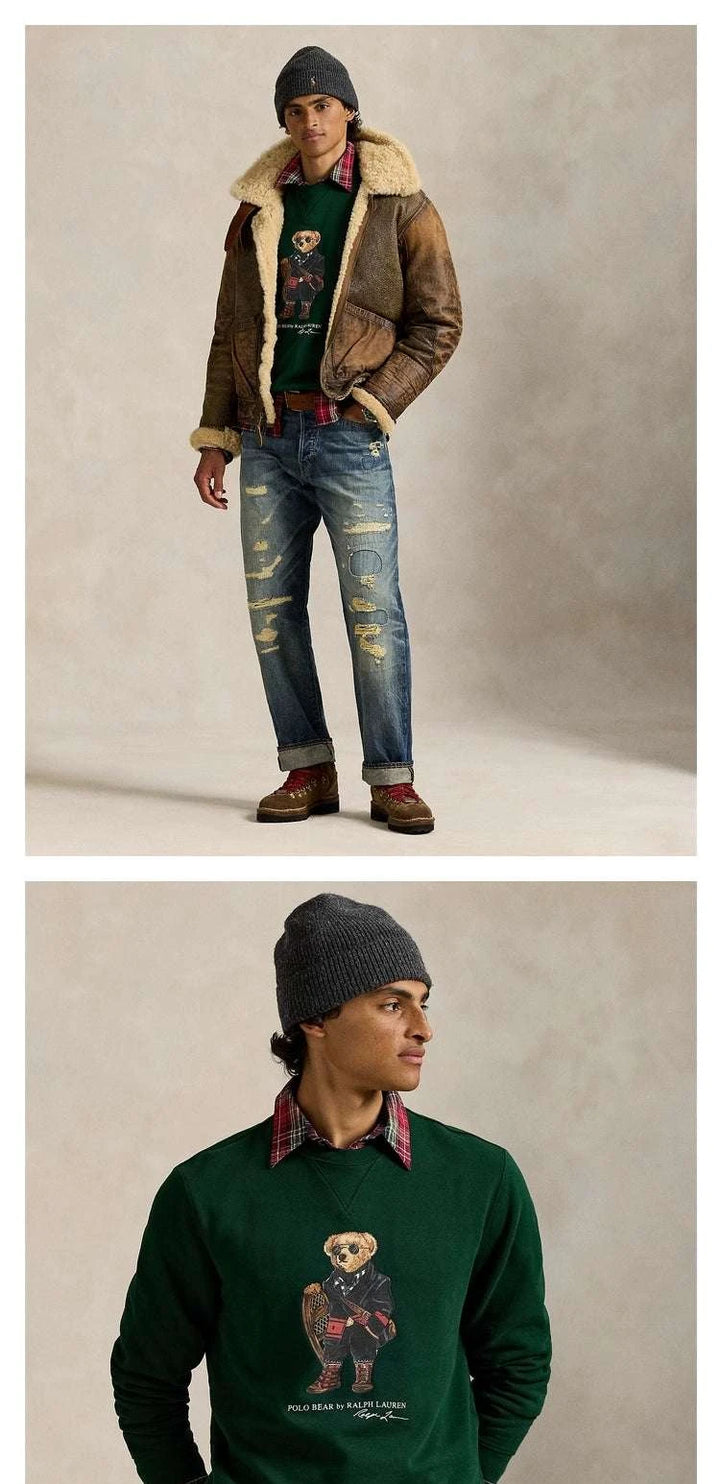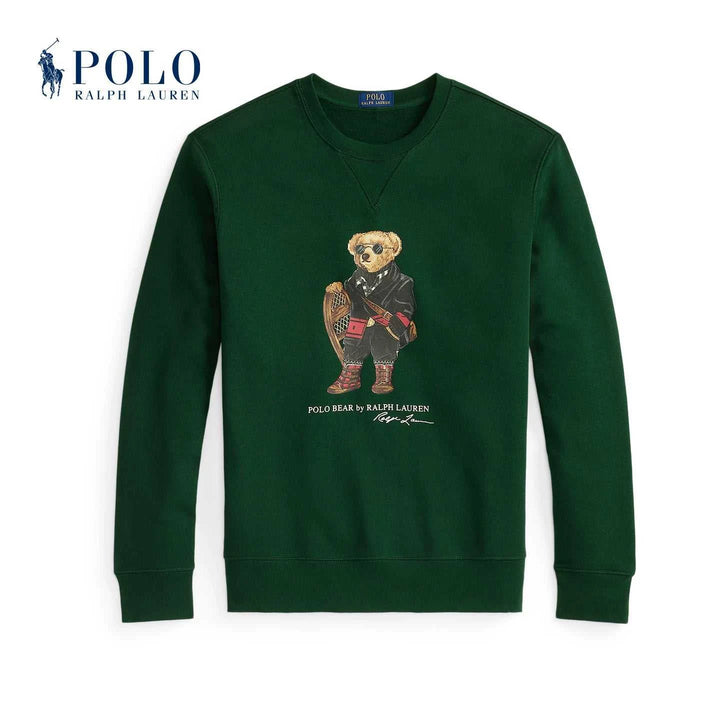 "Ralph Lauren Men's Polo Bear Sweatshirt" is an iconic piece in emerald green color. It unites the print of the Polo Bear wearing a coat, glasses, and mountain shoes with the brand's signature. The fabric is soft cotton lined with internal fleece that provides warmth and comfort, with a round collar and ribbed edges for long durability. The "Ralph Lauren Men's Polo Bear Sweatshirt" is perfect for layering under a leather jacket or with a checkered shirt for a stylish casual look. Its design suits daily outings, travel, and cold evenings, giving a sophisticated playful touch. Choose the "Ralph Lauren Men's Polo Bear Sweatshirt" to enjoy precise sewing quality and materials that withstand repeated washing without losing color. With every stitch and detail, excellence is shown, so do not hesitate to own the "Ralph Lauren Men's Polo Bear Sweatshirt" to renew your wardrobe with a practical and luxurious look. The "Ralph Lauren Men's Polo Bear Sweatshirt" is also considered an elegant gift option and is available in multiple sizes for comfort. Get it now, the "Ralph Lauren Men's Polo Bear Sweatshirt," to ensure durability and lasting quality.