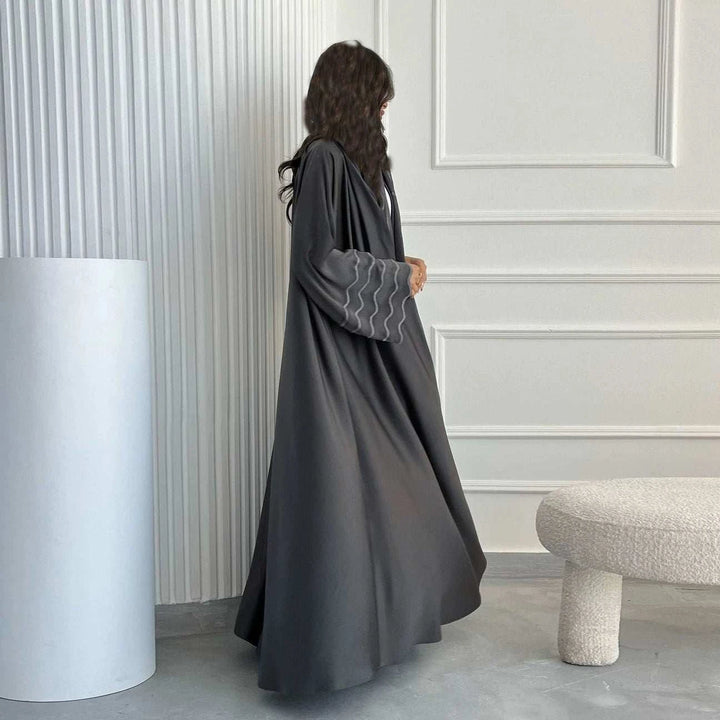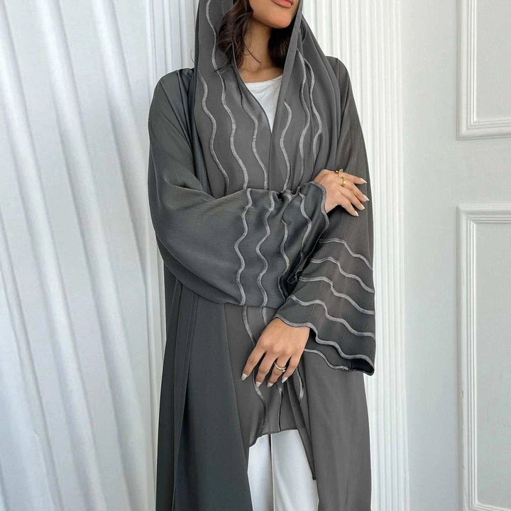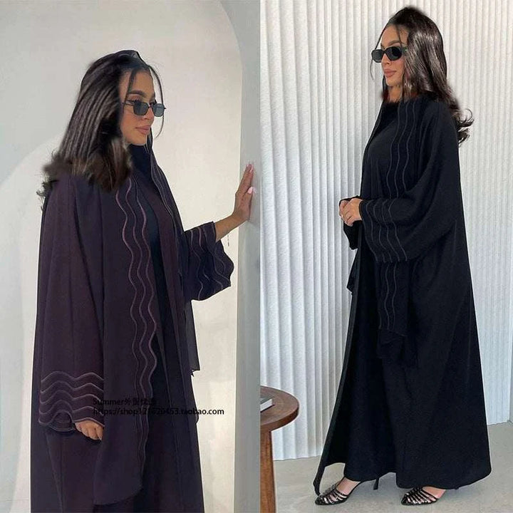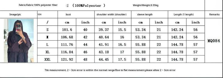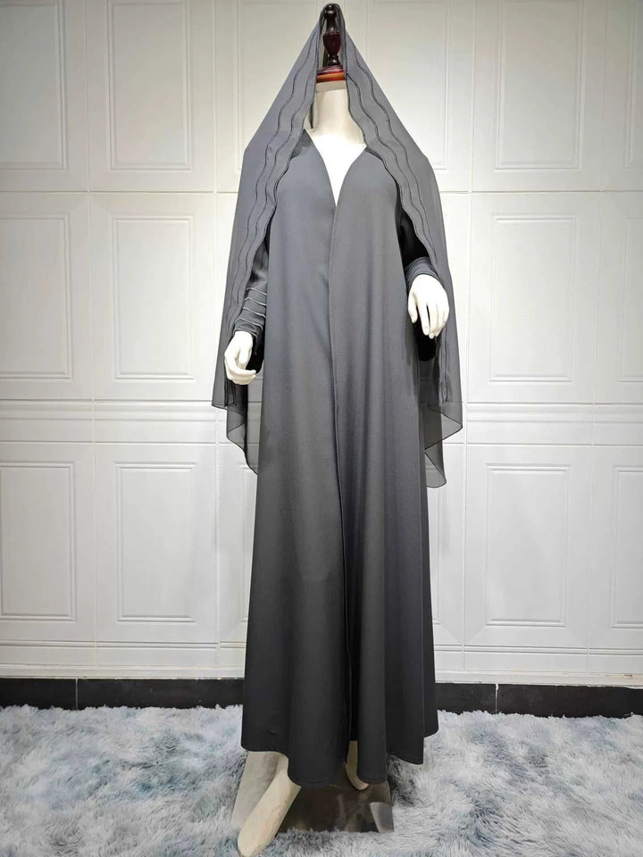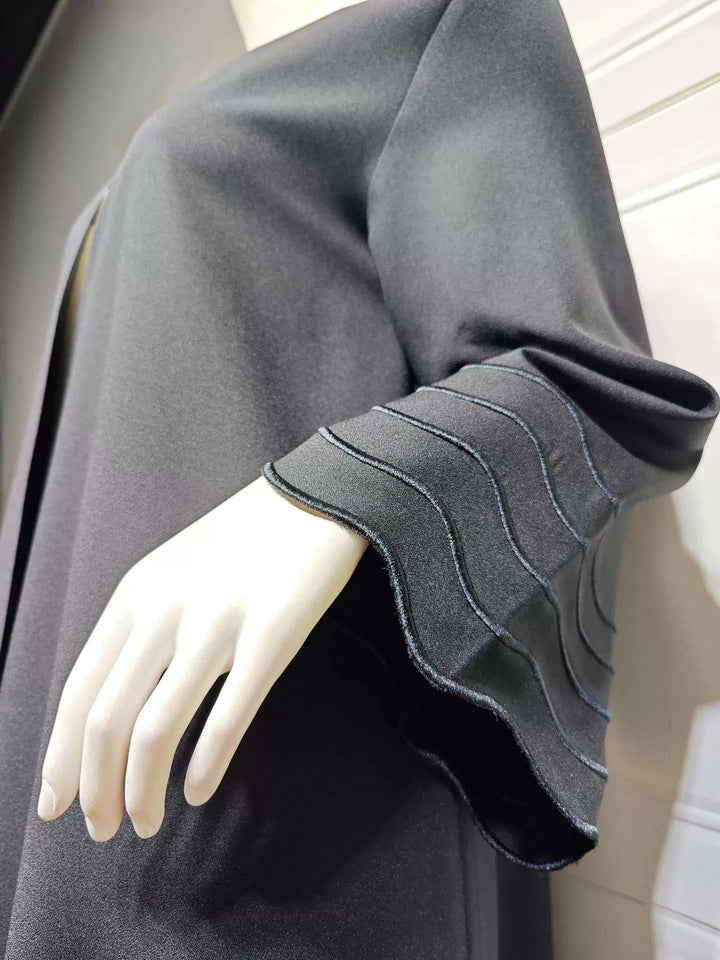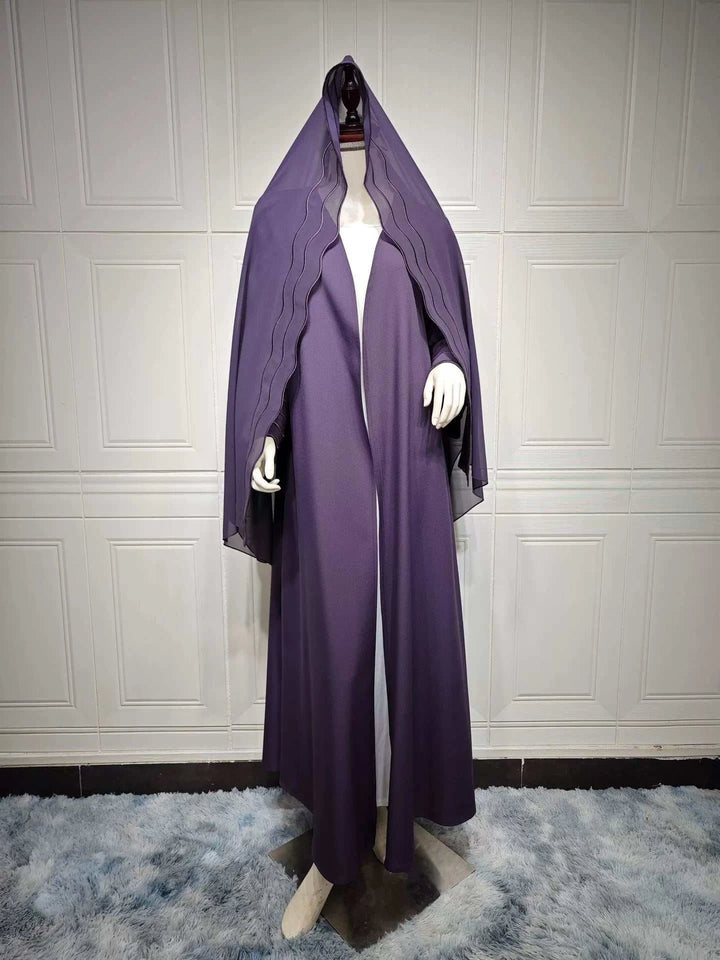 Choose contemporary elegance with the Saudi Smocki Robe abaya featuring a sophisticated design that blends simplicity with luxury. The Saudi Smocki Robe abaya is made from soft, lightweight polyester fabrics, providing all-day comfort and a silky touch on the body. The repeated wave pattern on the sleeves and front pleats highlights the Saudi Smocki Robe abaya with a quiet and modern distinction, while the chiffon shawl draped over the head adds an elegant feminine touch. The wide and flowing design ensures freedom of movement and suits various occasions from work to evening events. The Saudi Smocki Robe abaya is available in elegant colors such as black, gray, and purple to harmonize with your wardrobe. The quality of stitching and finishing makes the Saudi Smocki Robe abaya a practical investment that lasts, with easy care and cleaning. Experience luxury and comfort in one piece and don't miss the chance to own the Saudi Smocki Robe abaya that elevates your look to a new level. Choose the right size from S to XXL and enjoy a tailored fit and precise measurements, a practical design that gives you daily elegance and easy coordination with your favorite accessories. Order now and enjoy fast shipping and guaranteed luxury packaging.