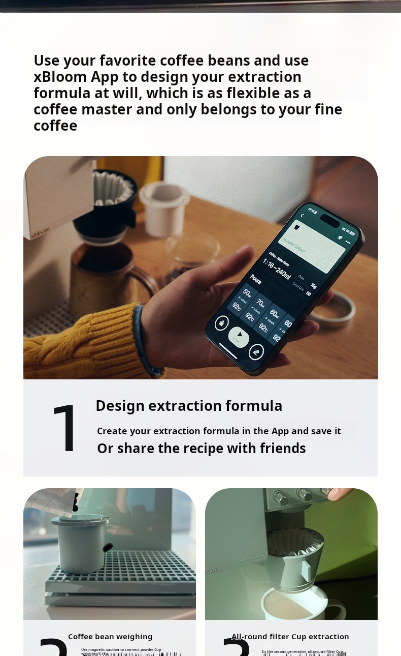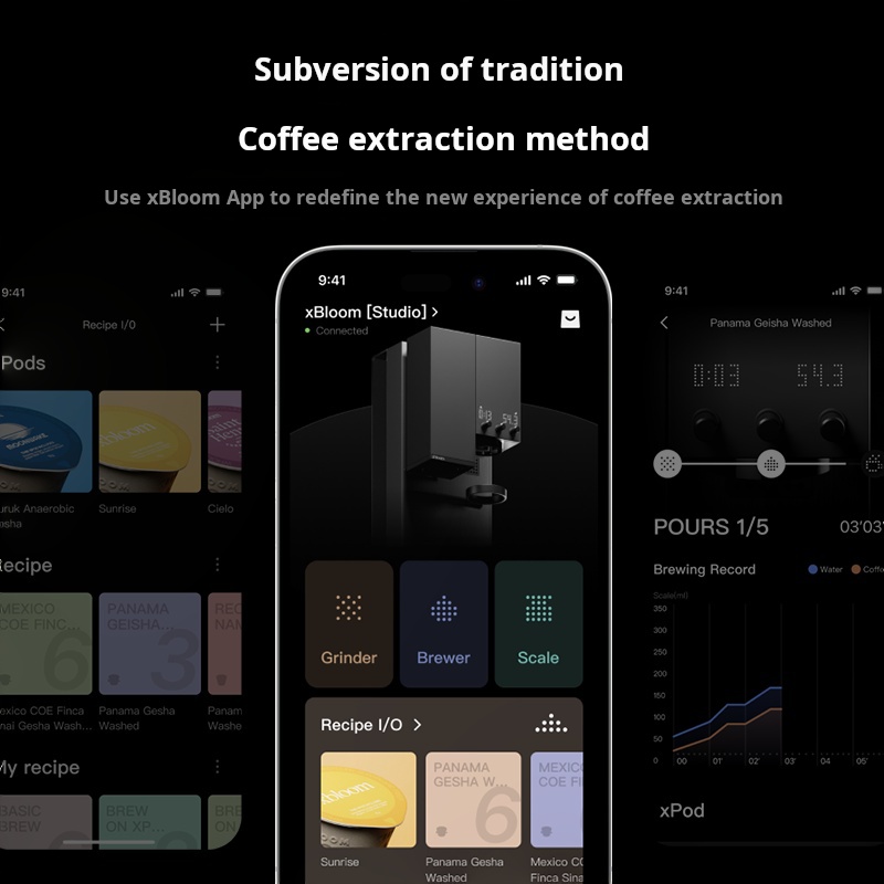 تم تصميم xBloom Studio ليعيد تعريف طريقة تحضير القهوة باستخدام تقنيات وادي السيليكون، حيث يجمع بين ثلاث وحدات احترافية في جهاز واحد:
