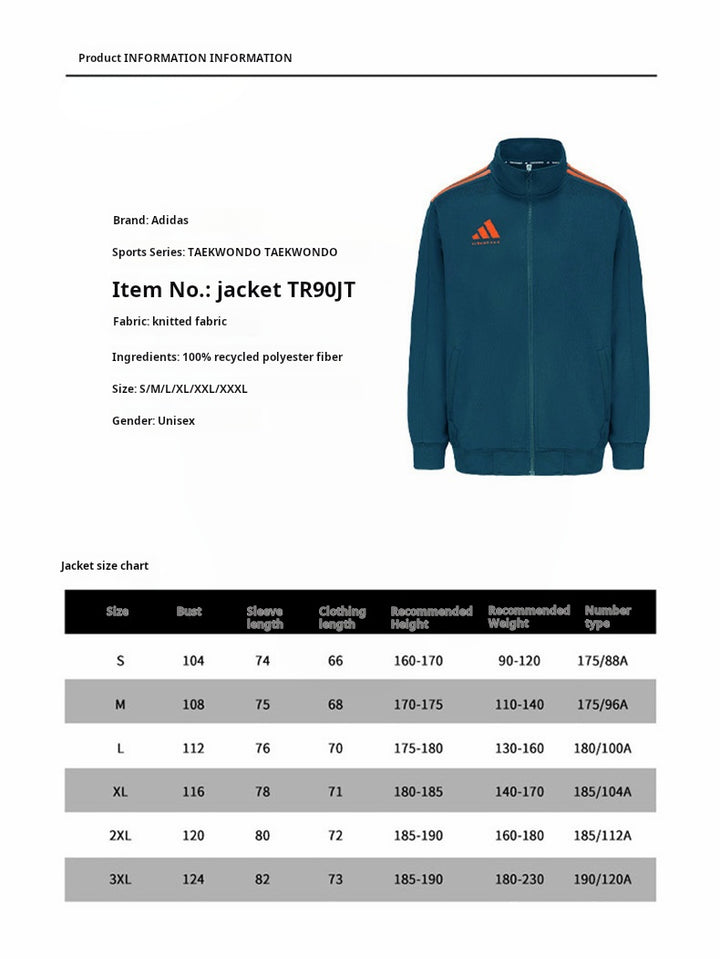 Adidas Sports Jacket Men's and Women's Classic Three-Bar Running Blue Authentic TR90JT-BO