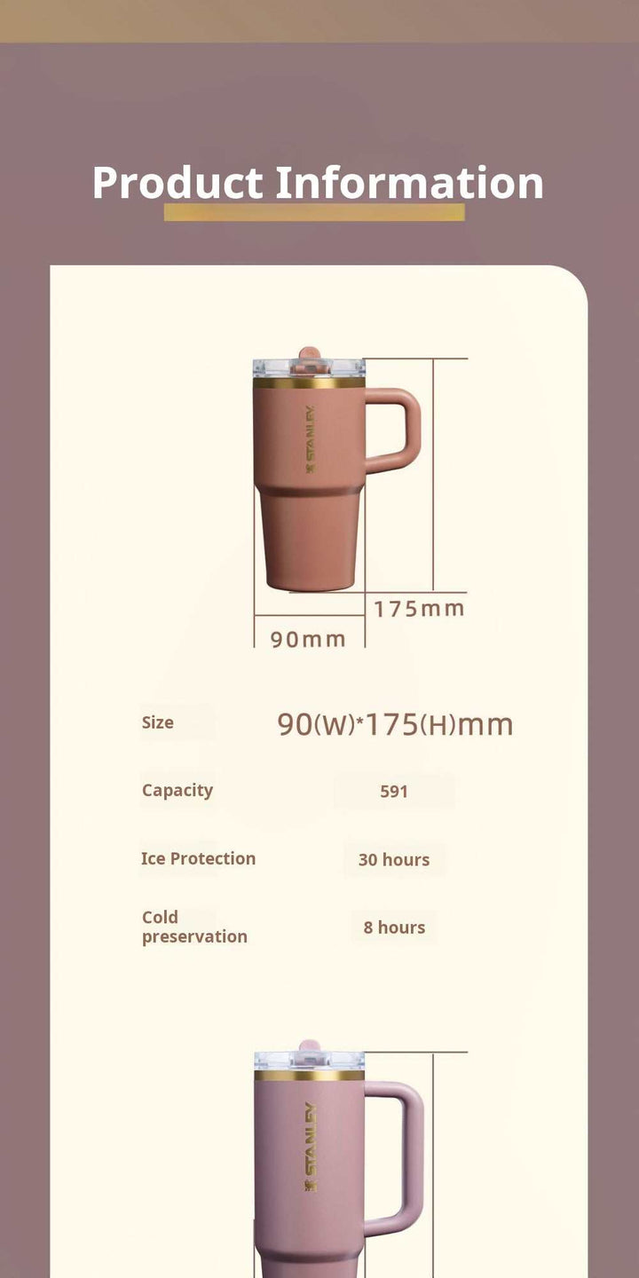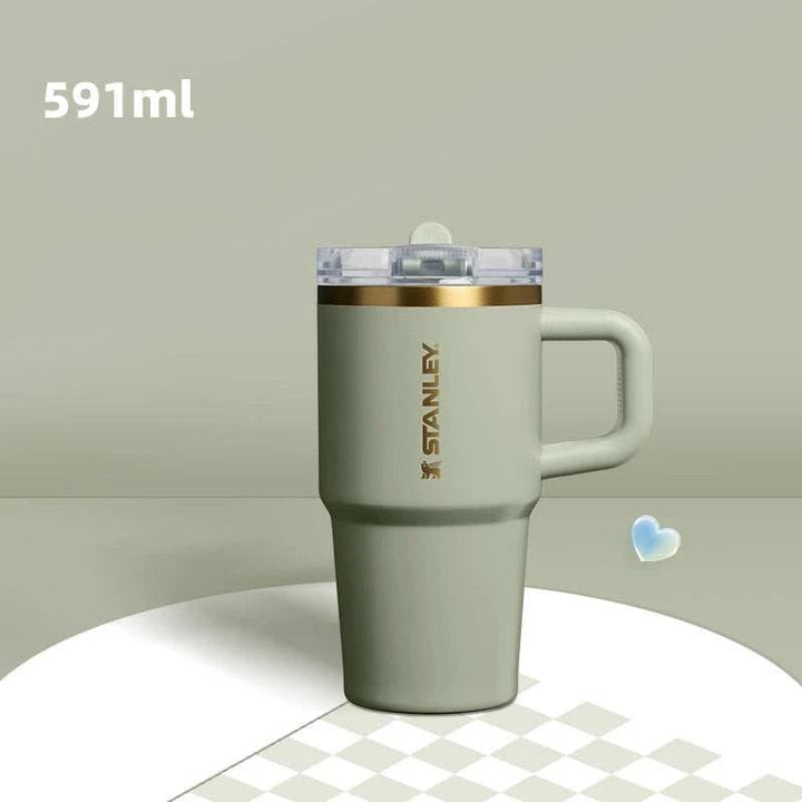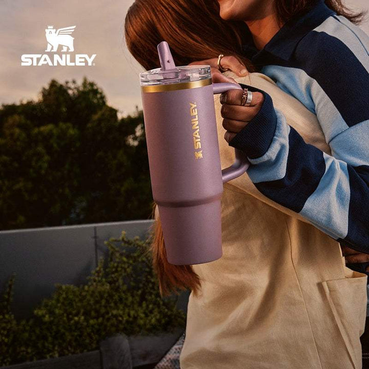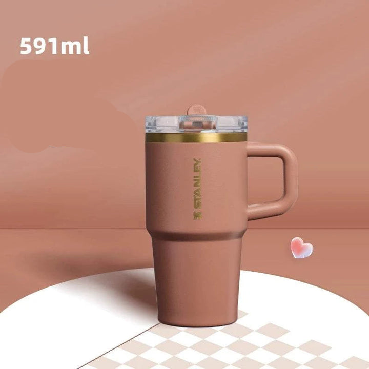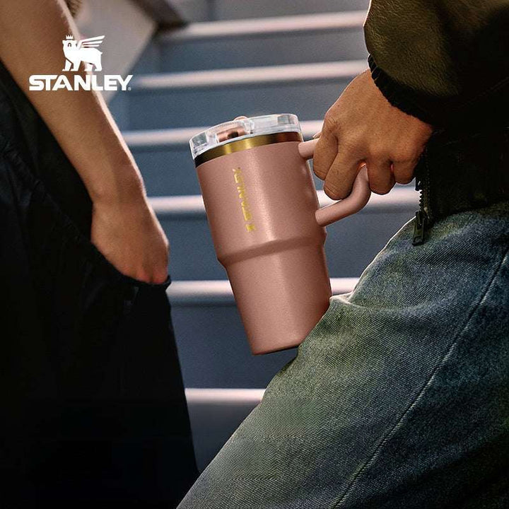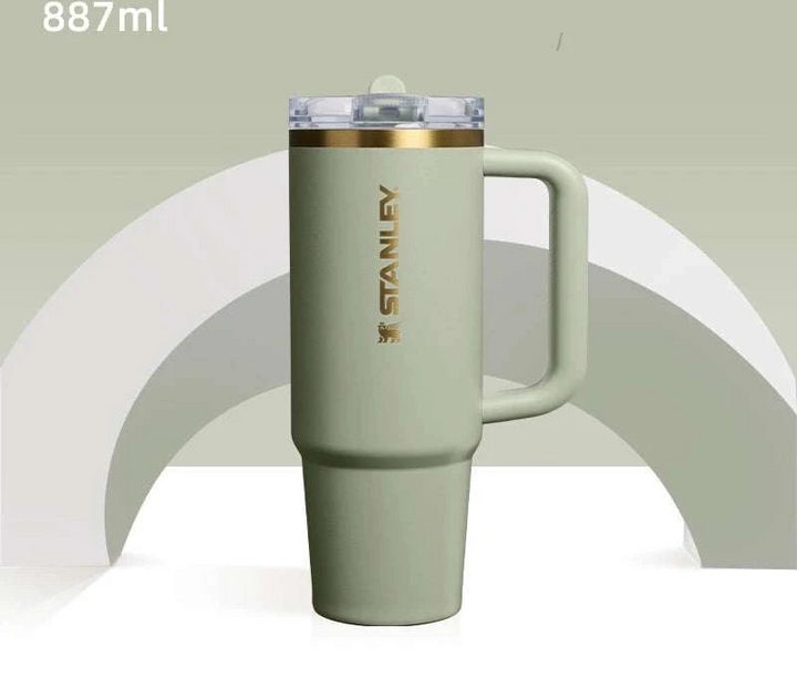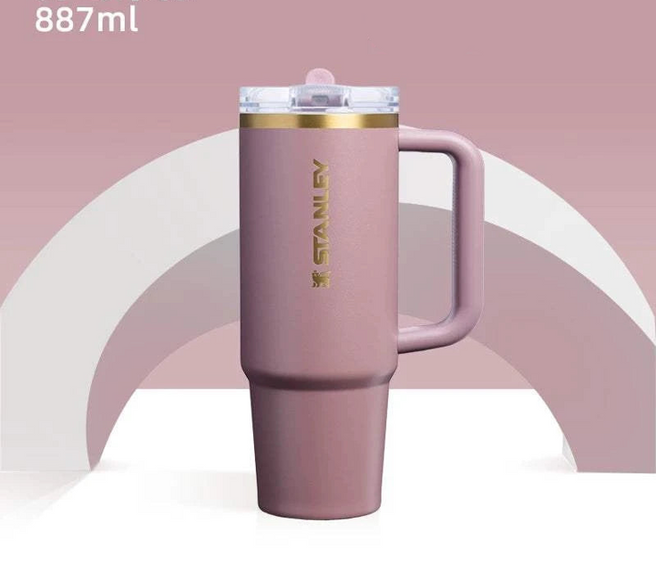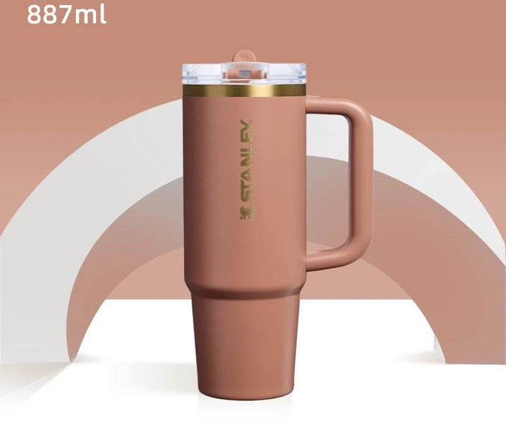 اختبر الفخامة العملية مع Stanley Fashion Water Cup ستانلي التصميمي العصري والمرن. Stanley Fashion Water Cup ستانلي يأتي بلون وردي مطفي ولمسات ذهبية على الشعار وغطاء شفاف بفتحة محكمة للإغلاق. Stanley Fashion Water Cup ستانلي مصنوع من فولاذ مقاوم للصدأ بعزل فراغي مزدوج يحافظ على الجليد حتى 40 ساعة والمشروبات الباردة لثماني إلى تسع ساعات ويتوفر بأحجام 591ml و887ml ليناسب يومك. Stanley Fashion Water Cup ستانلي يجمع بين مقبض مريح وتصميم قاعدي يناسب حامل السيارة، ما يجعله مثالياً للمكتب والسفر والنزهات. Stanley Fashion Water Cup ستانلي سهل التنظيف ومغطى بطبقة مقاومة للانزلاق لمظهر أنيق ومتين يدوم طويلاً. اختر اللون الترابي الأنيق أو الأخضر الهادئ لتكمل أسلوبك وتستمتع براحة وثقة في كل رشفة. احصل اليوم على Stanley Fashion Water Cup ستانلي لتجربة توازن بين الأناقة والأداء وجودة صناعية تضمن استخدامًا يوميًا بلا عناء. تصميم متين، غطاء محكم، حواف ملساء، هدية مثالية لمن يهتمون بالتفاصيل اليومية. اخترها الآن وتمتع بمزايا لا تضاهى.