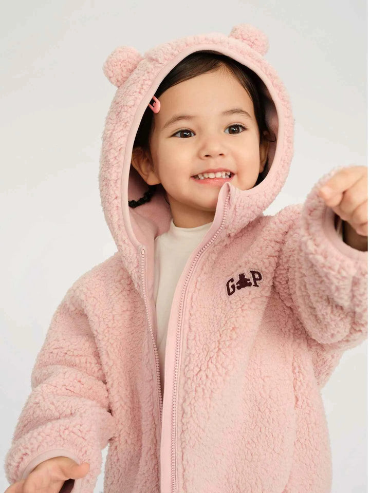 Gap جاب – سويت شيرت للبنات مصنوع من فرو شيربا ناعم يدفئ بشدة مع بطانة داخلية مريحة وتصميم بقلنسوة مزينة بأذني دب صغيرة تضيف لمسة مرحة. Gap جاب – سويت شيرت للبنات يتميز بسحّاب أمامي سهل الاستخدام وفتحتين جانبيتين عملية ليدين الطفل، ولون وردي هادئ يعكس أناقة يومية مع توافره بألوان محايدة أيضاً. Gap جاب – سويت شيرت للبنات خيار مثالي للعب في الهواء الطلق أو للخروج العائلي بفضل خامات ذات جودة عالية تتحمل الغسل وتحتفظ بالشكل. Gap جاب – سويت شيرت للبنات يقدم مزيجاً من الراحة والأناقة مع شعار معبر مطرز بشكل رقيق يبرز التميز البسيط. Gap جاب – سويت شيرت للبنات مناسب للطبقات المتعددة في الأيام الباردة ويوفر حرية حركة كاملة للأطفال. اختاريه لتمنحي صغيرتك إطلالة دافئة وعملية تُحبّها كل يوم. Gap جاب – سويت شيرت للبنات متوفر بمقاسات متعددة ليليق بنموها السريع ويمنحك قيمة عملية وأنيقة مع سهولة التنظيف والصيانة ويمنح راحة وثقة في كل لحظة لعب بالخارج.