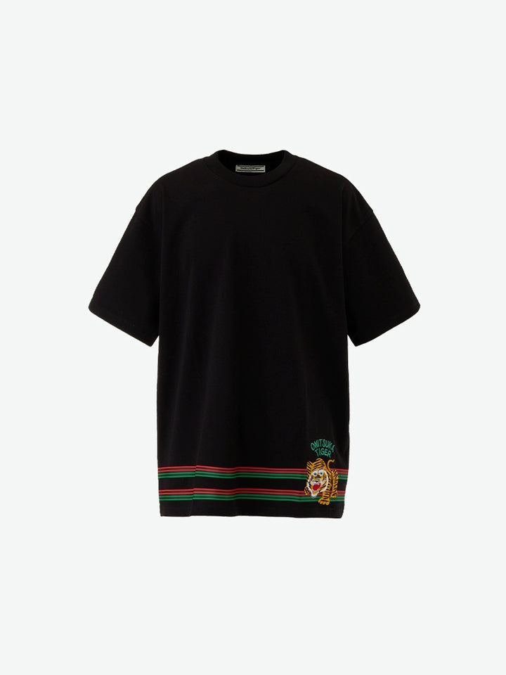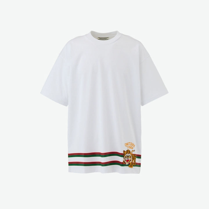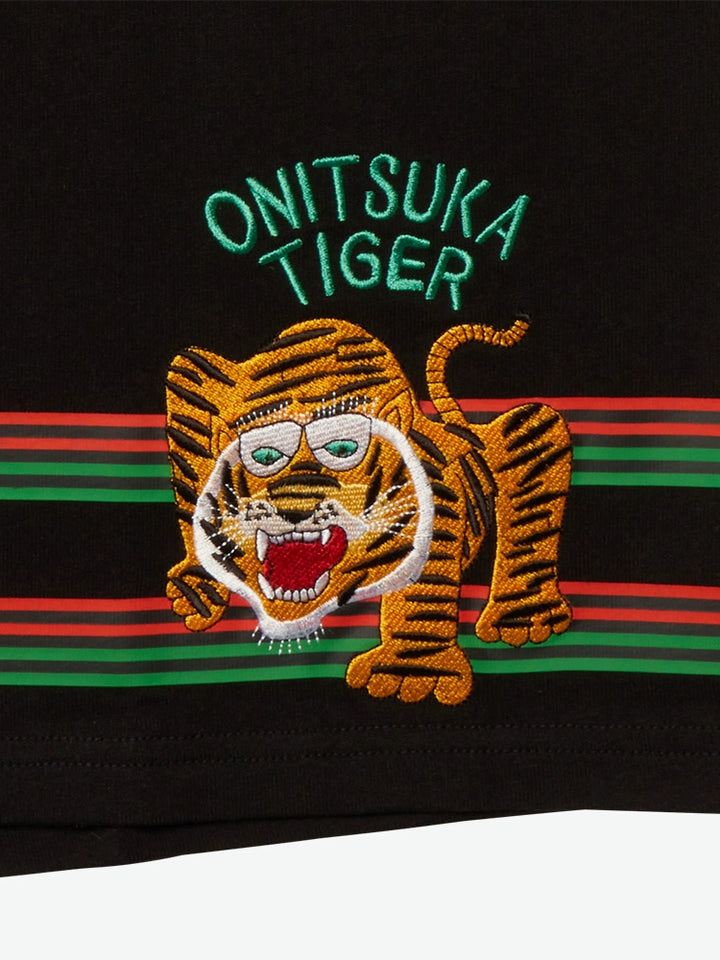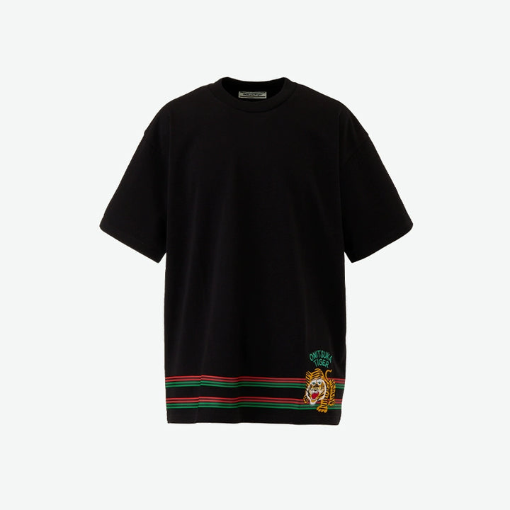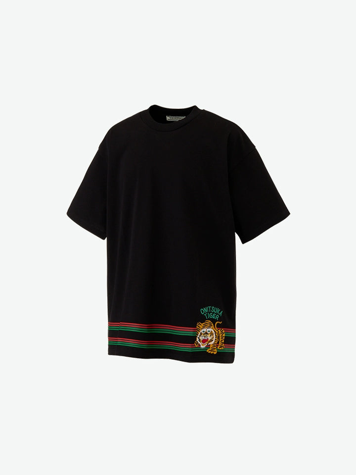 Onitsuka Tiger | أونيتسوكا تايجر تيشيرت للجنسين مطبوع نصف كم أبيض وأسود