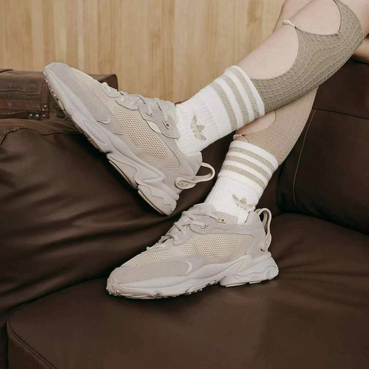 حذاء OZWEEGO adidas يقدم مزيجاً مثالياً بين الأناقة والراحة. تصميمه الضخم العصري يظهر عبر جزام علوي شبكي مع طبقات من الجلد والشمواه بخطوط ناعمة وتدرجات بيج ورمادي وبني، مما يمنح مظهراً حيّاً ومتناغماً. نعال سميكة مبطنة توفر امتصاص صدمات ممتاز وثبات عند المشي اليومي والرحلات الطويلة. مع قبضة خلفية عملية وشعار ثلاثي الورق على الجانبين، يتماشى OZWEEGO adidas مع أزياء الشارع والملابس الرياضية بسهولة. خامات جيدة التهوية وخياطة دقيقة تضمن متانة طويلة واستخدام مريح طوال اليوم. اختر OZWEEGO adidas لتجربة مريحة تجمع بين دعم القدم والأناقة العصرية سواء للعمل أو التنزه. متوفر بألوان محايدة متعددة تناسب جميع الإطلالات، ويمنحك حضوراً مميزاً دون التضحية بالوظيفة. موديل OZWEEGO adidas مزوّد بوسادة داخلية مرنة ونعل مطاطي خفيف وتهوية محسّنة ودعم للكاحل مع خامات سهلة التنظيف، لذلك يبقى اختيار OZWEEGO adidas مثالياً لراحة يومية وأناقة دائمة. اطلبه الآن لراحة فورية ومظهر عصري أنيق ومميز.