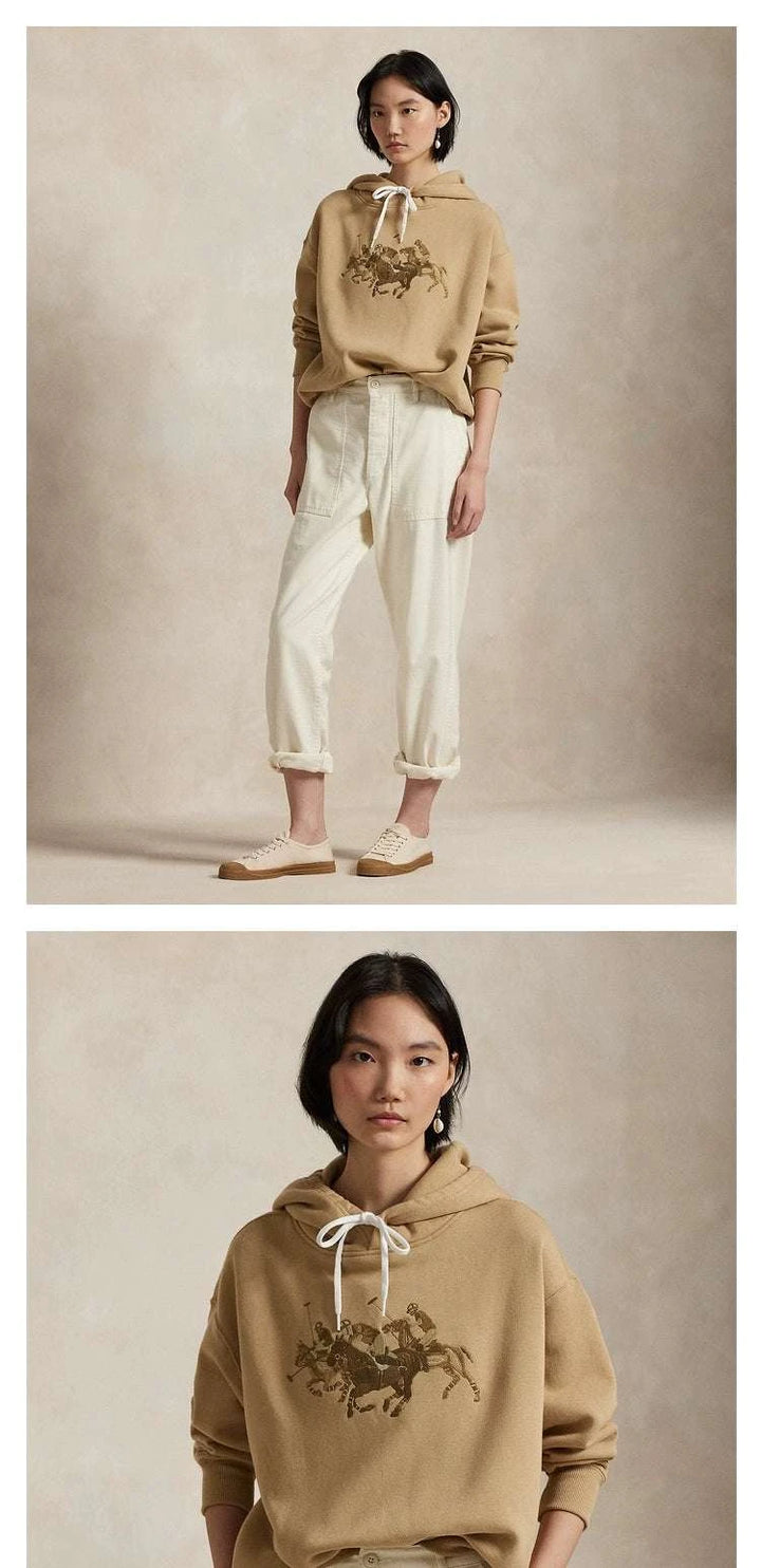 Ralph Lauren Hoodie هودي Ralph Lauren Hoodie هودي Ralph Lauren Hoodie هودي Ralph Lauren Hoodie هودي Ralph Lauren Hoodie هودي Ralph Lauren Hoodie هودي تصميم أنيق بلون بيج داكن يضفي مظهراً دافئاً ونبضاً كلاسيكياً. قماش ناعم بملمس فخم وشعور مريح مناسب للارتداء اليومي أو للطبقات في الأجواء الباردة. نقش الفرس ولاعبي البولو المركزي يضيف لمسة رياضية راقية، وحبل الغرز الأبيض عند القلنسوة يبرز التفاصيل. أكمام واسعة بمفصل من تفصيل حاشية مرنة تعتني بالقصّة وتمنح ثباتاً للموديل. قصة مرتخية مناسبة للراحة وتمنح طابعاً عصرياً وأنيقاً. مثالي للسفر، للمشاوير المسائية أو للاسترخاء في المنزل. جودة التصنيع واللمسات الدقيقة تعكس تفرُّداً وذوقاً رفيعاً. سهل التنسيق مع جينز، بنطال قماشي أو تنورة، ليمنحك إطلالة متوازنة. غسيل سهل والحفاظ على اللون مضمون، بينما القماش يحتفظ بدفئه وملمسه. هذا الاختيار يبرز روح الماركة ويمنح قيمة عملية وأسلوباً يومياً. اقتناؤه يضمن ارتداءً مريحاً وبهاءً مميزاً. لا تتردد في إضافة هذه القطعة التي تستحق إلى خزانة ملابسك اليوم.